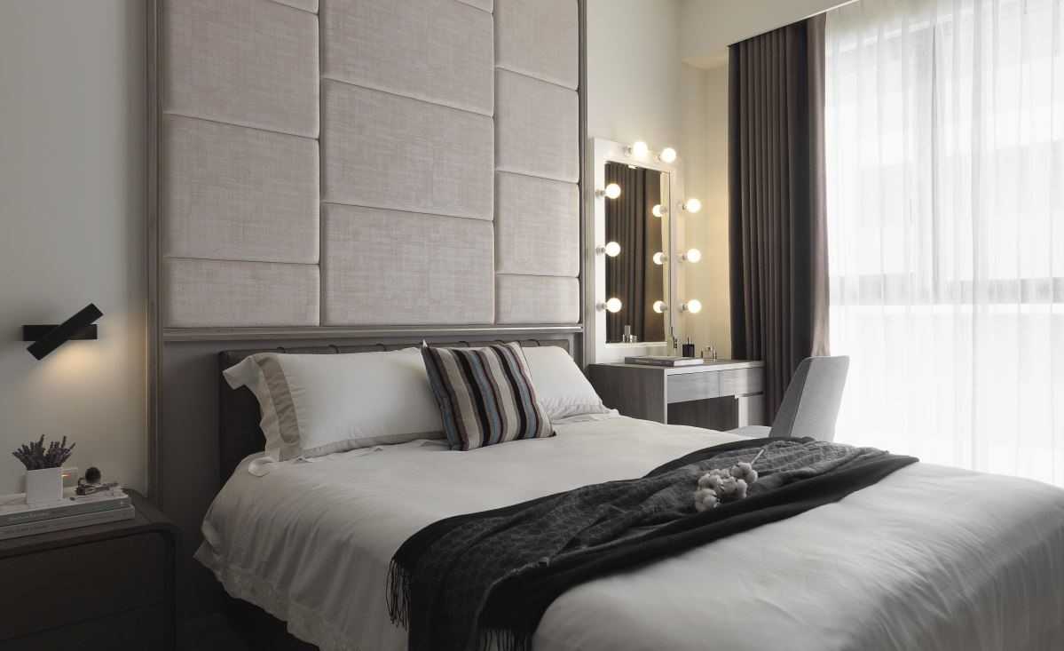 走進(jìn)私領(lǐng)域,有別于公共空間的沉穩(wěn),換上輕盈的淺色系,予以私人空間更減壓的放松氣息。