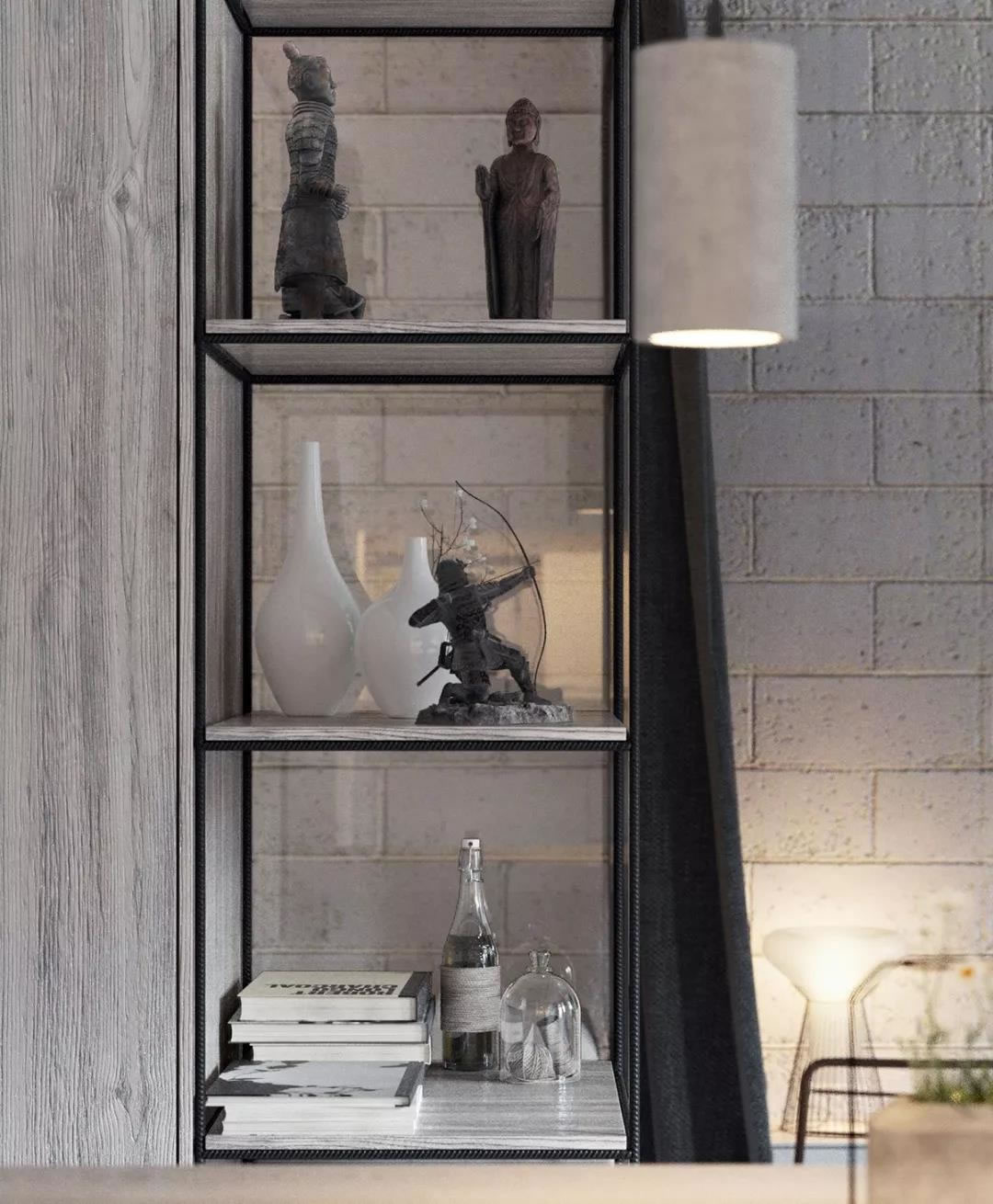 設(shè)計(jì)師在這43平方米的小面積空間里,采用簡(jiǎn)約的幾何形狀、豐富的紋理、混泥土,鋼絲和木材。以一種看起來(lái)新鮮和精致的方式,將這些廉價(jià)的材料應(yīng)用到極致,整套設(shè)計(jì)非常出色。