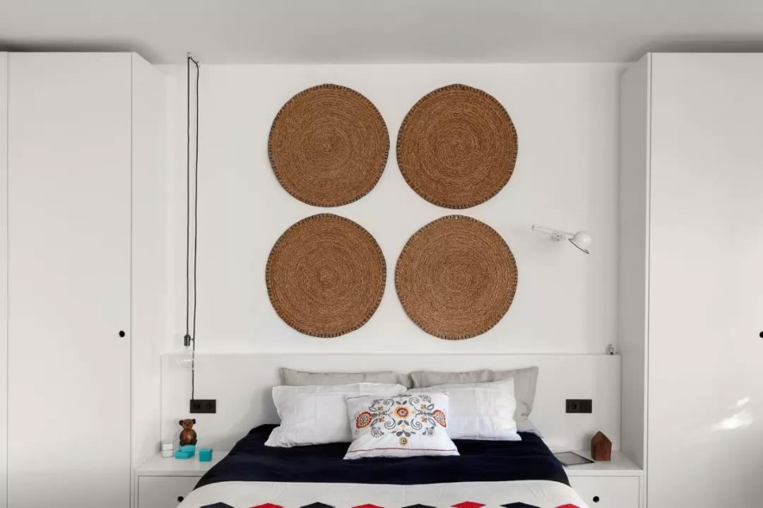 大部分必要的存儲(chǔ)空間都裝在簡(jiǎn)約的白色抽屜中,帶有柔滑的白色飾面,看起來(lái)干凈利落,圓形裝飾與立方體形狀的家具形成鮮明的對(duì)比,最重要的是,整個(gè)公寓的重要裝飾細(xì)節(jié)都沒(méi)有任何重點(diǎn)。